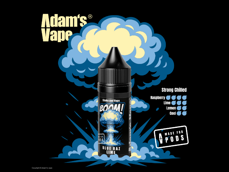 - Příchuť Adams Vape BOOM! Shake and Vape Blue Razz Lime